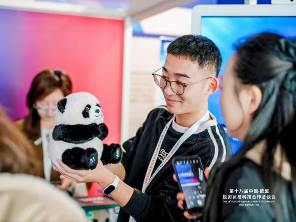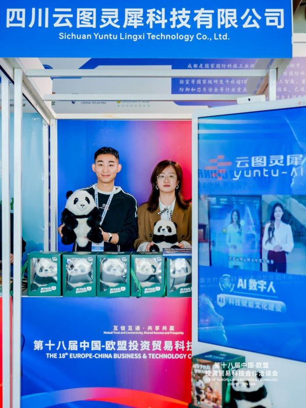 云图灵犀携以大熊猫为灵感打造的AI全龄智能伙伴——“云抱抱”亮相,中欧新兴技术产业(智能机器人产业)对接交流会,成为全场焦点。