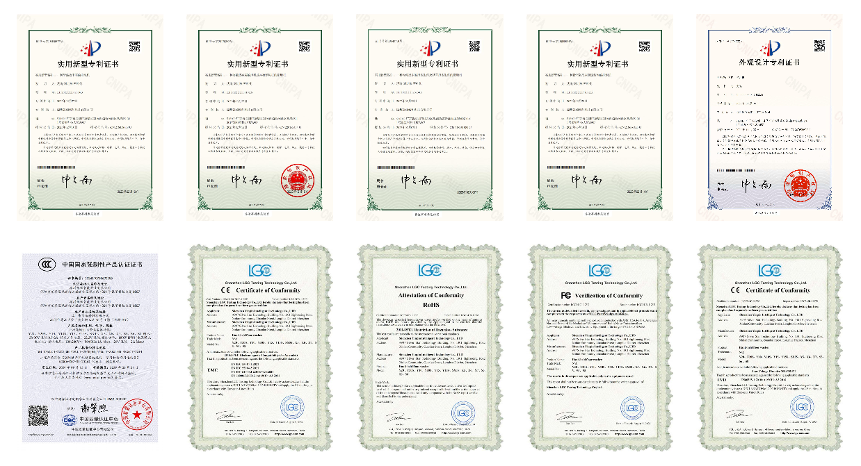 认证资质:通过ISO9001:2015、ISO14001:2015质量管理体系认证,产品获得CCC、CE、ROHS、UL、CB、EAC、FCC等多项国际认证
